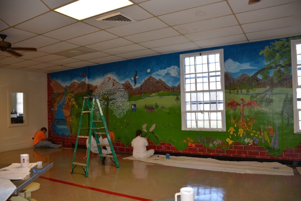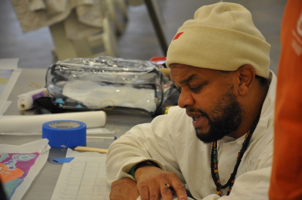 Kyes: A lot of what we do is based on who we’re able to get funding from in any given year. So we’ve had a funding agency in the past that allowed us to do some murals inside of the correctional facilities, and in two of the facilities, we focused on trying to make the family visitation spaces look nicer, because they were dismal at best. But again, you have to find a funder that will support that specific project. And you guys know, organizing things with the Department of Corrections takes time, and quite a lot of patience. You have to find things that will work within their highly regimented schedule, and with the availability of our teaching artists or teaching writers. What we’ve tried to do is maintain programming with every facility we work in. There have been a couple of exceptions to that as of late, because the Alabama DOC is so incredibly under-staffed, with their security personnel, so we become a burden. Sometimes they can find a place for us to be and there is security present, but we’re the outsiders. They want to make sure that we’re safe and that everything is well. So we’ve got a little bit of a hold on a couple of facilities right now until things get smoothed out. The programs started with poetry, and then we moved to visual arts and the humanities, and then it grew to STEM programming, and now we’re doing a college degree. Our basis is the arts and humanities, but what we do with all of our facilities is to rotate. So if we do a visual arts class at Tutwiler [Prison for Women] one semester, then maybe the next semester we’d do a science class or a literature class, and then we’d rotate back. Because the women have so many varied interests—and it’s the same thing with the men. So we just try to have variety inside of the facility.
