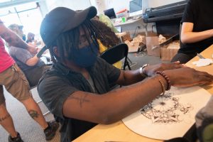 In 2017, I applied for the Summer Internship Program and was accepted into the class. It was a very insightful experience as I got to assist Artist Benjamin Volta on his murals, Parts Per Million and Moxie Roots. During the internship, my curiosity on Ben’s process had me asking a lot of questions and he was very open with me and the other interns. This program opportunity really boosted my confidence in my own artistic process.