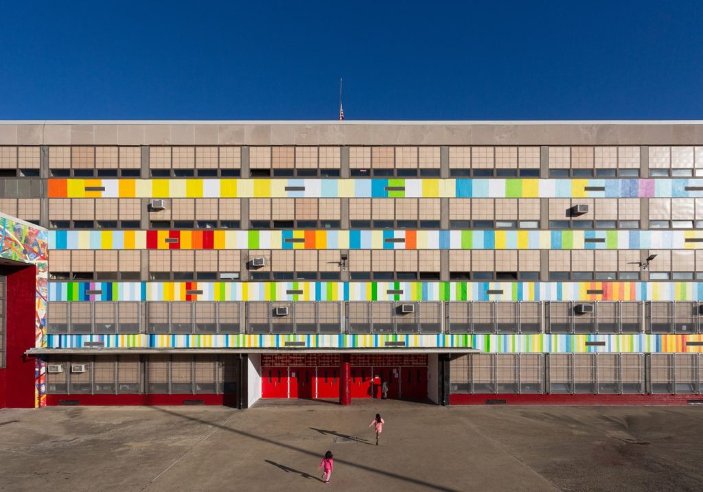 Brand new on South Broad Street, Parts Per Million stretches across the well-known façade of South Philadelphia High School. The mural tells the story of the school’s diversity through the visual language of geometry, biology, and geography. Students working with artist Ben Volta also talked about climate science, and the large role that we can all play in our collective future, one small part at a time.