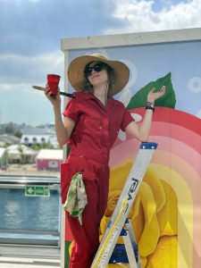 Emily White is a painter, muralist, and sculptor. Emily’s work focuses on the relationship between the animal and its changing environment. Her paintings are paired with objects that are distinctly human, illustrating the bond of the animal’s life with our own. She invites audiences to reflect on the consequences of human industry and innovation on our natural world, and our relationship to it. Emily has been painting murals in Philadelphia for over a decade. She has worked with the Philadelphia Zoo, Philadelphia Flower Show, The Philadelphia International Airport, Blick, Ketel One, and Virgin Voyages to name a few. She’s had her hand in many prominent Philadelphia Mural Arts murals such as “Untitled” by Amy Sherald and Roberto Lugo’s “The Talented Mr. Trotter” on the new Clay Studio. Emily also creates sculpture and paintings for gallery shows and has her second solo feature with Arch Enemy Arts later this year. Originally from the Boston area, Emily has been living in Philly for 11 years. She graduated from Massachusetts College of Art in 2011 with a BFA in sculpture. In 2021, she started White Knuckle Painting LLC and continues to paint murals and signs for businesses in Philadelphia and surrounding suburbs.