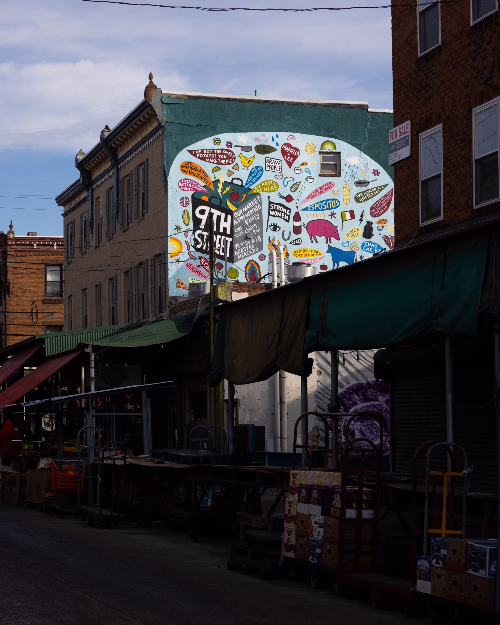 Part of Our Market a community-centered, multi-layered, multi-year public art project created and led by artist Michelle Angela Ortiz. The project was developed in April 2019. Our Market is focused on supporting the im(migrant) vendors, business owners, and neighbors that work and reside in the 9th Street Market, the artist’s home for 40+ years. The Project invests in the 9th Street Market by offering creative community strategies to tackle the issues of gentrification, racism, displacement, and erasure.