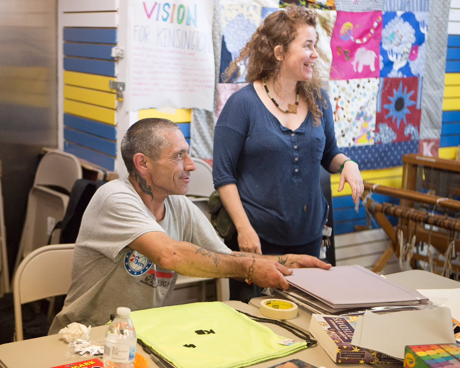 That project was part of our Porch Light program, which develops community wellness through art. Last year we also worked with residents at Einstein Medical Center’s Long-Term Structured Residence, many of them living with health issues that make communication difficult. Artist James Burns helped them find new ways to make connections and turned their creations into a mural called A Collection of Creative Decisions. For some of the participants, this experience led them to communicate for the first time. This year, we’re deepening the relationship between the residents and their Germantown neighbors, weaving bonds through shared experiences.