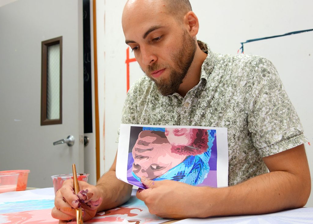 Mural Arts teaching artists like Joseph Iacona travel to AIC twice a week, and offer a freeform class schedule that allows students to drop in or attend every session. We’re biased when it comes to our instructors, but it feels pretty good to hear that Sonsini feels the same way: “They’re all lovely. The Mural Arts artists are all very plugged-in, trauma-informed, youth-focused, and person-focused.”