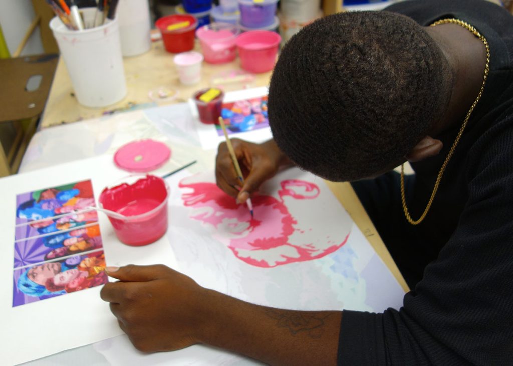 One of our long-time site partners is the Achieving Independence Center (AIC), which is a resource and support center for youth transitioning out of the foster care system, all the way from fourteen to twenty-one. It’s a “one-stop-shop,” as Arts@AIC Coordinator Nicole Sonsini describes it, offering “a host of services from top to bottom, from housing and homelessness support, education, employment, mentoring, onsite health and sexuality counseling, drug and alcohol rehab, therapy—pretty much everything a youth could need during that time period. If we don’t have it here, we’ll connect them to someone who does.” AIC is also a space where kids in foster care can find a sense of community, as art student Anthony says: “Leaving foster care, you don’t run into a lot of other kids who have been in care. You feel less normal, so it helps to put everybody in the same space…I don’t feel as alone. And it helps you get the skills that you may not have gotten in foster care, so it helps you build up a sense of normalcy, feel more included, feel less like a foster kid and more like a kid who just happens to be in foster care.”