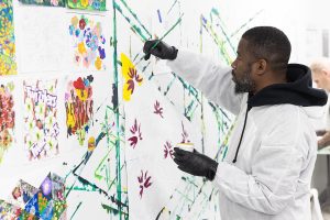 It’s not unusual to see staff and artists walking around the Mural Arts building in clothes covered with paint – we are an arts organization, after all. However, I come to Mural Arts in a unique way: I’m a social worker who oversees the Porch Light Department, and artmaking is not my expertise. I strongly believe in it as a tool for mental health, but I never saw myself as one of the creatives.