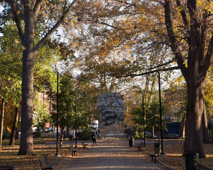 I had a hard time with the title! I had to ask my wife, because she’s so good with titles. I needed a title that went back to the history of the monument, because I didn’t want it to be an erasure. It had to be a conversation, so I knew the word “battle” had to be in there. “Joined” is about the disparate communities that use this park. Up there, a lot of the GFS kids will play soccer. There’s some drug activity over there, the senior center over there—all the beauty, the impoverishment, the humility, the humanity, the audaciousness of this park. It’s the richness that I love. Yes, I don’t want drugs in the park, but it’s a part of who we are and what is happening here. So what does it mean to rally around an object that reminds us we are a community, reminds us that we’re a neighborhood, that we’re empowered, that in our personal and our civic lives, we have a responsibility. This neighborhood is going through a lot—I’ve had some people come up to me and express that this project is a recognition that this city hasn’t forgotten about Germantown, that a financial investment will happen in this community. People see this as a reclaiming of the neighborhood. If we’re joined, we’re joined in this moment, in this spectrum of each moment. I’m hoping we’ll realize that we’re tethered, in many ways, to each other.