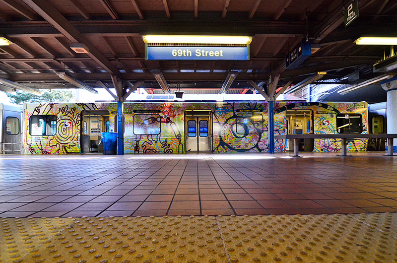 You may recognize the L Train from when it debuted on SEPTA’s Market Frankford Line. The original piece was created by Volta and a group of enthusiastic students from Waring Elementary through Mural Arts’ Art Education Program in 2013. Over the course of three months, students from Waring Elementary visited Volta’s studio to explore the functions of the brain, which turned into a series of drawings of brain cells and neurons. The project itself came together in a whirlwind of creative energy and it was Volta’s first time completing a project of this kind. Said Volta: