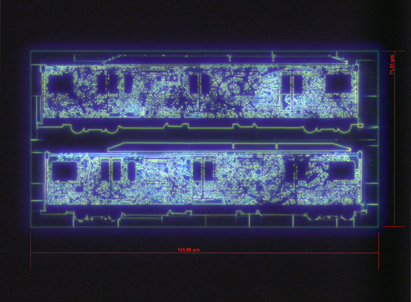 Mural Arts muralist and educator Ben Volta is back at it again, and this time he’s showing us the power of the brain on a micro level with the help of Gerald Lopez, the Manager of Nanofabrication at the Singh Center for Nanotechnology at the University of Pennsylvania. Together, they produced an object that is quite possibly the smallest piece of participatory public art yet. We’re excited to share that Lopez printed a nano version of Volta’s 2013 project, the neuron train or “L Train” for Singh Center’s 2016 open house.