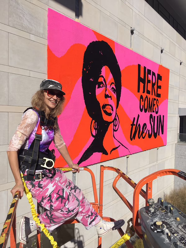 A new mural from artist Olek is taking shape in the hands of the community right now! Crocheted squares will come together to reveal the face and words of an important woman from Philadelphia history.