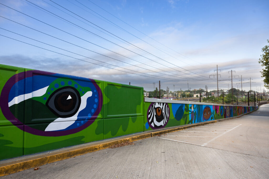 “At Mural Arts, we believe deeply in art’s ability to shine a light on urgent causes and spark dialogue around complex issues—like envisioning a world where humans and animals thrive together,” said Jane Golden, Executive Director of Mural Arts Philadelphia. “This project is a powerful reflection of our mission, especially as it transforms the 34th Street fence—just outside the Zoo—into a vibrant showcase of the Zoo’s Conservation in Action programming across 10 distinct mural panels. These new works serve as a striking backdrop at the Frog Lot, highlighting our ongoing collaboration with the Zoo and our shared commitment to education, beauty, and impact.”