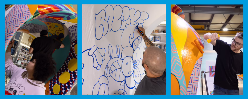 “With the larger-than-life vessel sculptures that will be installed in the neighborhood, my goal is for folks to take pride in our community and see themselves as artists in the colorful patterns derived from and inspired by Kensington that will adorn the artwork,” said Lugo. “The sculptures themselves are an invitation for the community to interact; by stepping inside, you complete the artwork’s vignette as the portrait subject. I was inspired to create these sculptures and debut them in the community that raised me after taking notice of the stigma surrounding people taking selfies or photos with artwork. Above the criticism, I saw the natural inclination of people yearning to be reflected in something beautiful. With We Here, I’m bringing art back to my neighborhood and urging the people of my community to step into their absolute talent and creativity.”